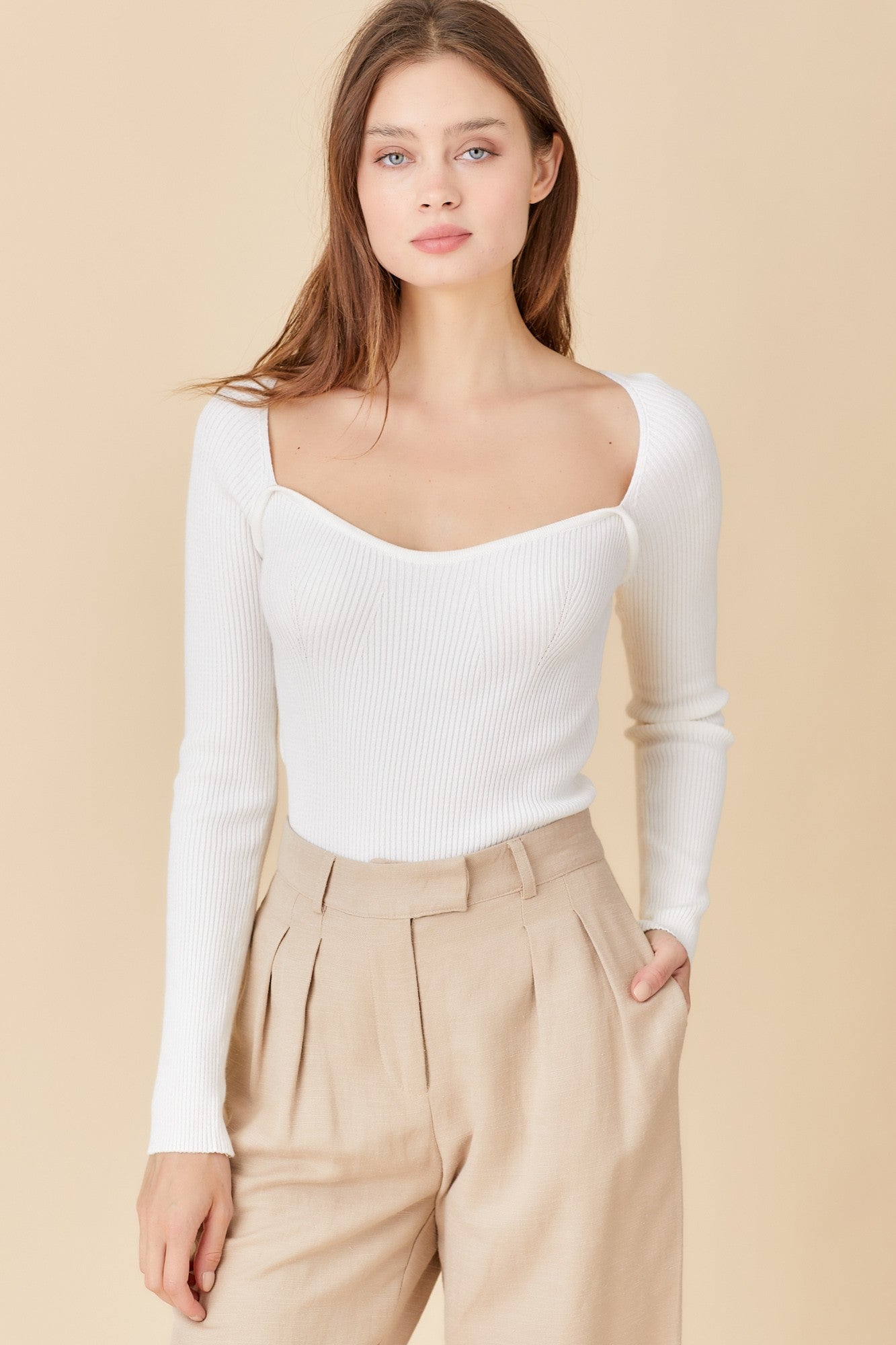 This Ivory Amanda Top is the perfect addition to your wardrobe. Its sweetheart neckline and long-sleeved design make it perfect for pairing with any outfit, while its soft and lightweight construction ensures comfort.