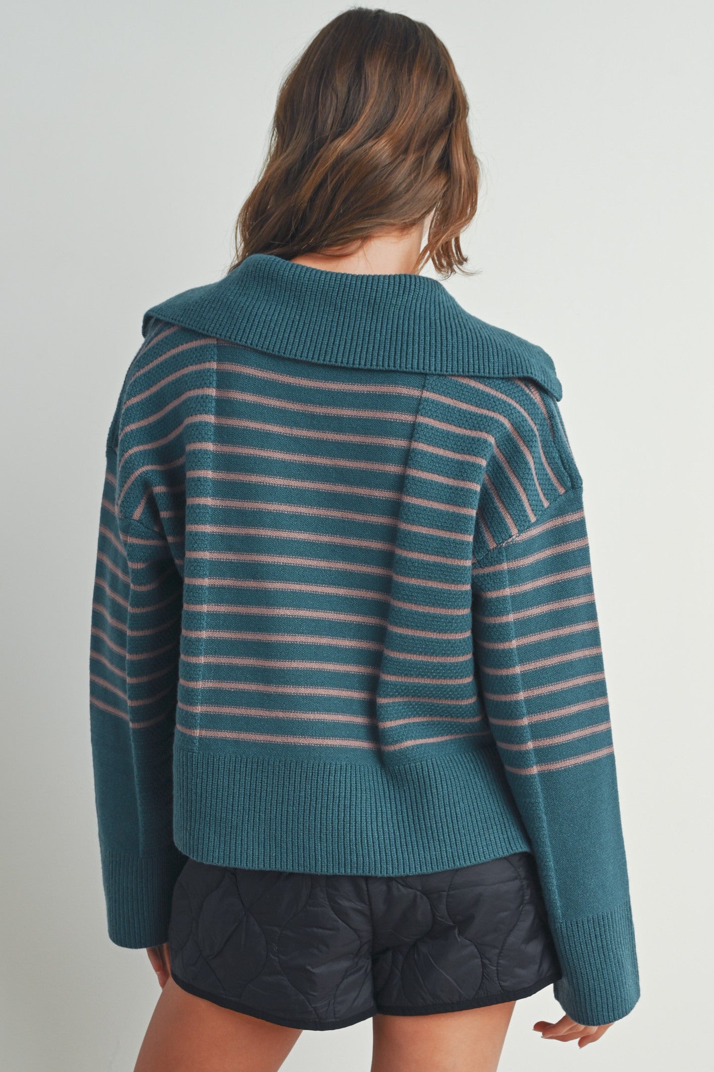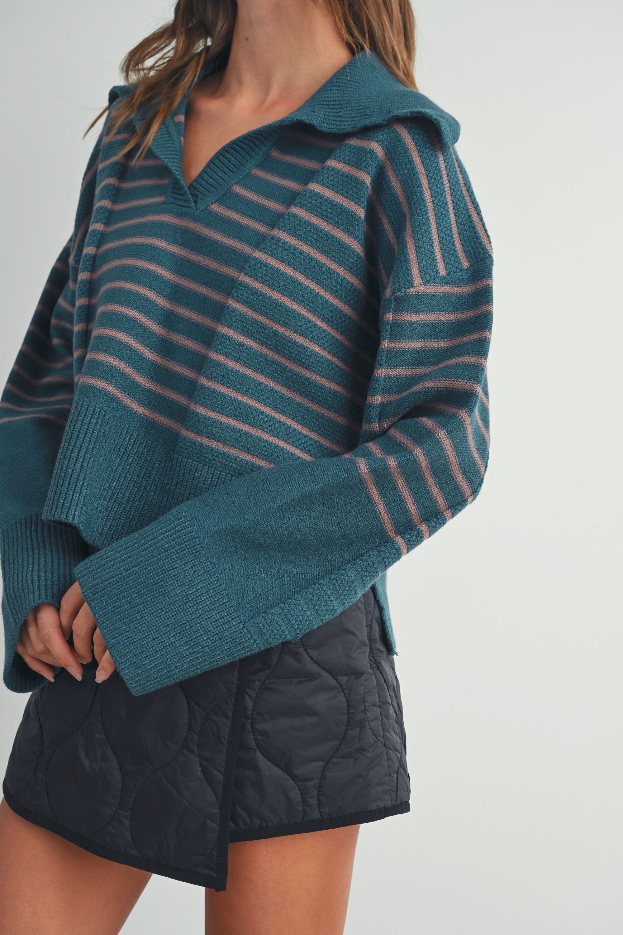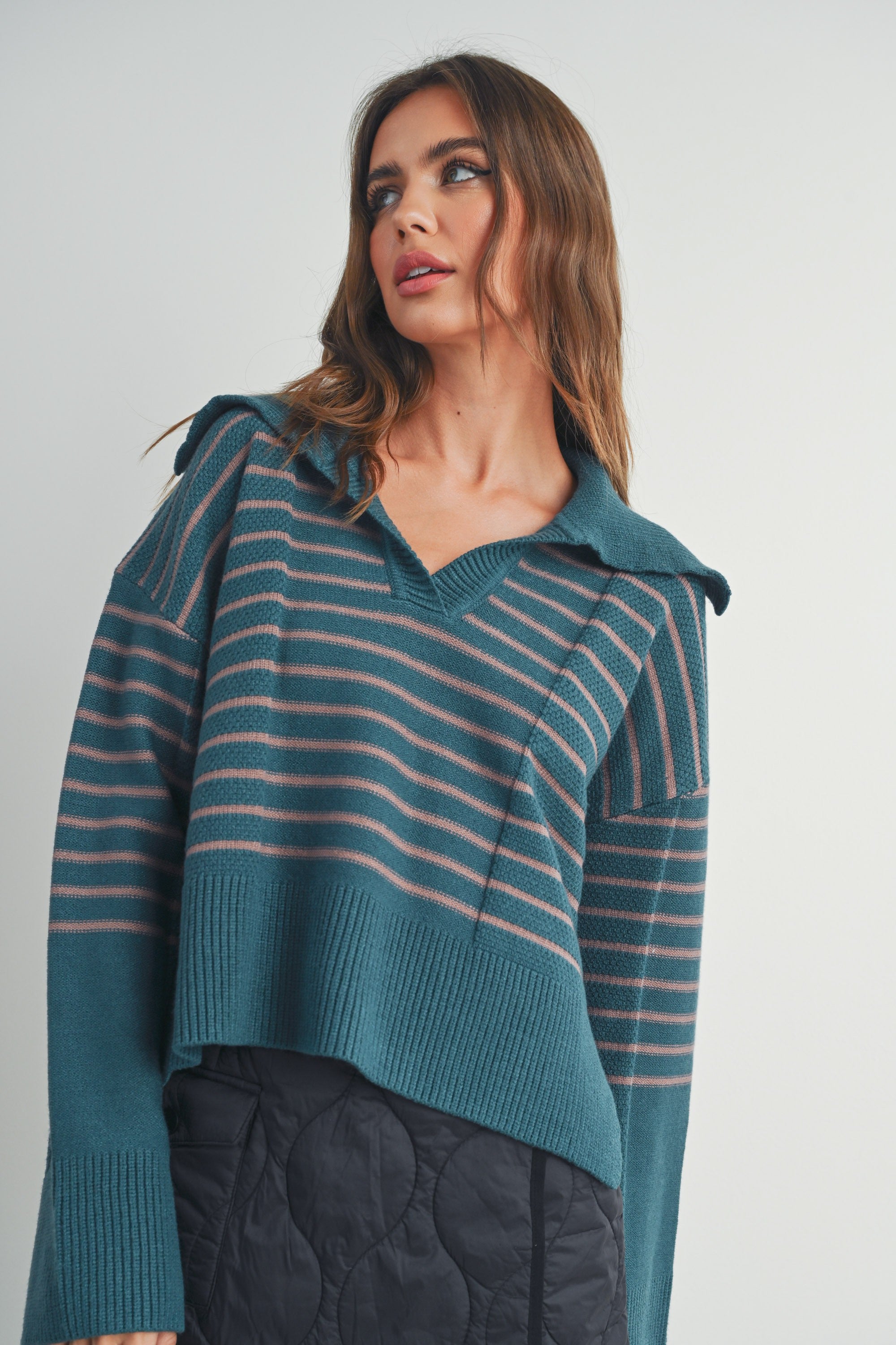 Look your best even in the coldest of days with this fashionable Ellie Sweater. With a textured striped pattern and V-neck big collar, you'll be sure to turn heads with this warm and stylish look. Ready for chilly evenings out or cozy time at home - it's the perfect outer layer!