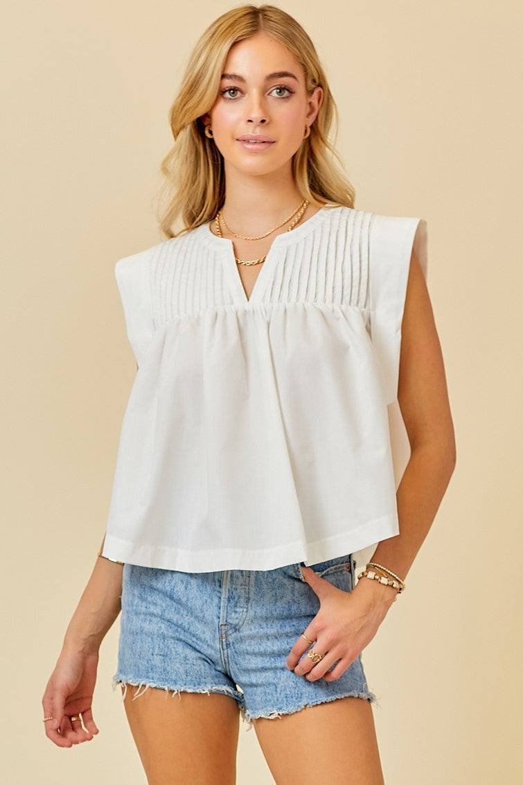 Delicately crafted with pleat and v detailing and lightweight fabric, this babydoll style top is a playful and comfortable choice for all sorts of fun.