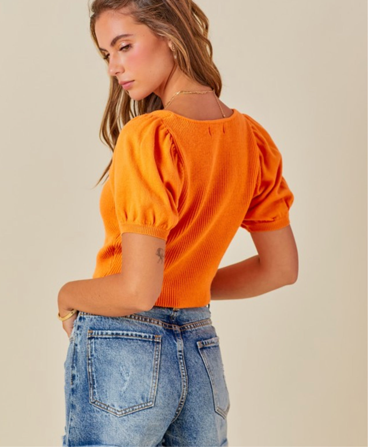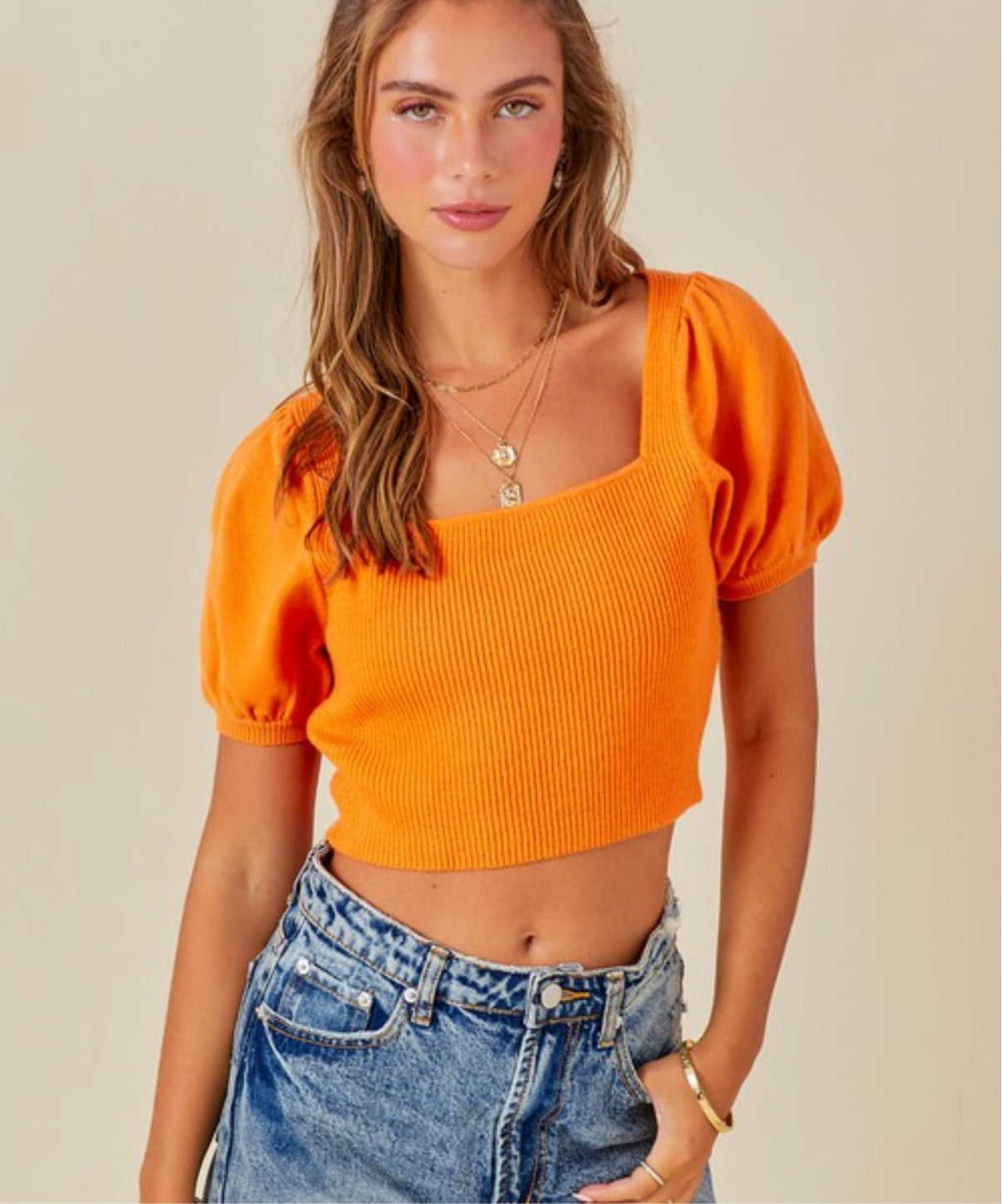 This ribbed, cropped sweater top comes with puff sleeve detail and a square neckline for an effortlessly feminine look. The perfect blend of stylish and comfy, the Layla Top is the perfect piece to take your OOTD to the next level.
